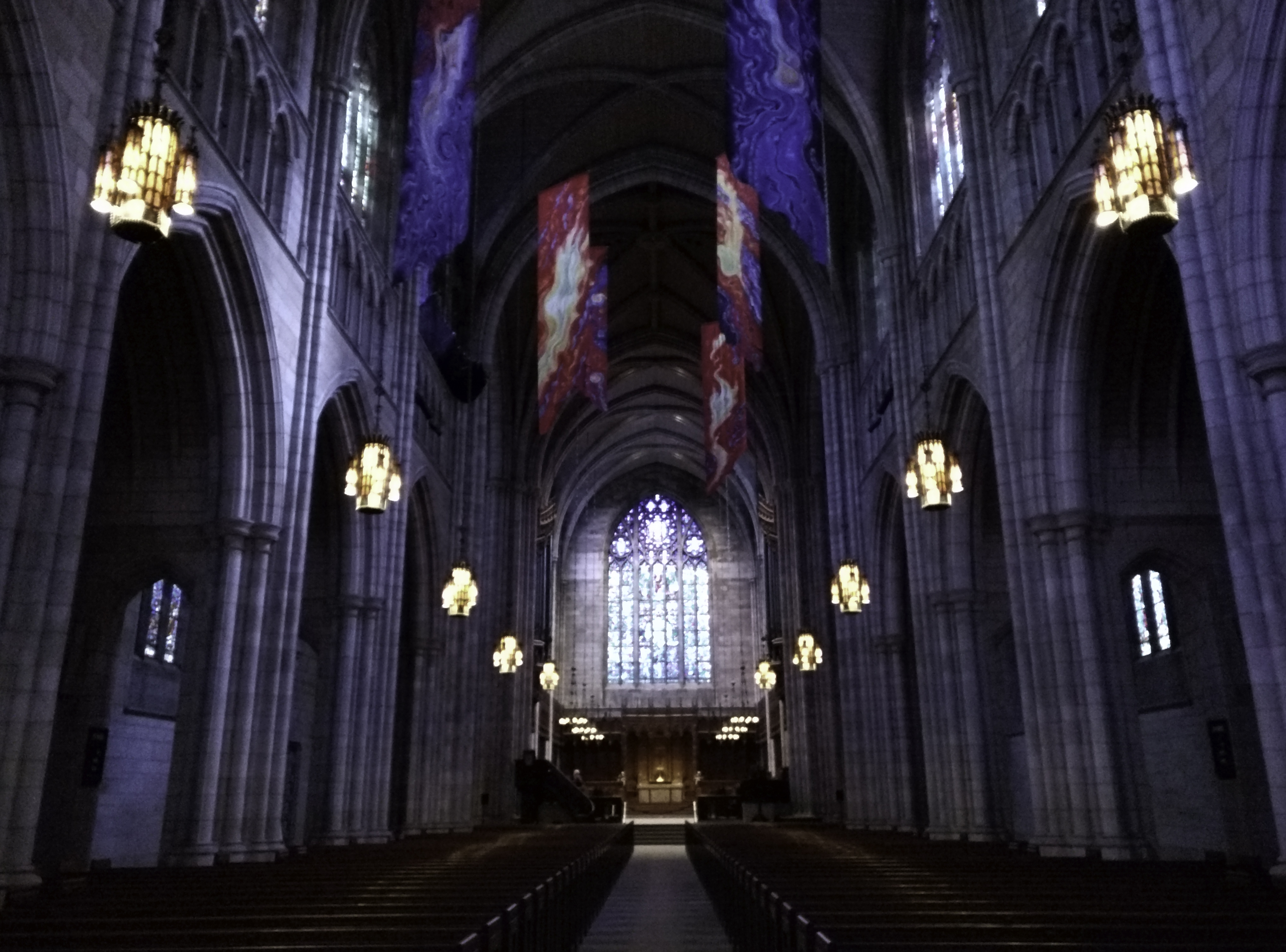 Although I've largely moved from SLRs to mirrorless cameras for my big-camera needs, I'm frankly using big cameras less and less, because they have poor dynamic range unless I use bracketing and post-processing, and they take poor pictures at night unless I use a tripod. Both of these use cases have become easy and reliable on cell phones, due mainly to computational photography. HDR+ mode on Nexus and Pixel smartphones is one example. These pictures were taken with the 2015-era Nexus 6P: the left image with HDR+ mode off, and the right image with HDR+ mode on. Click on the thumbnails to see them at full resolution. Look how much cleaner, brighter, and sharper the HDR+ image is. Also, the stained-glass window at the end of the nave is not over-exposed, and there is more detail in the side arches.