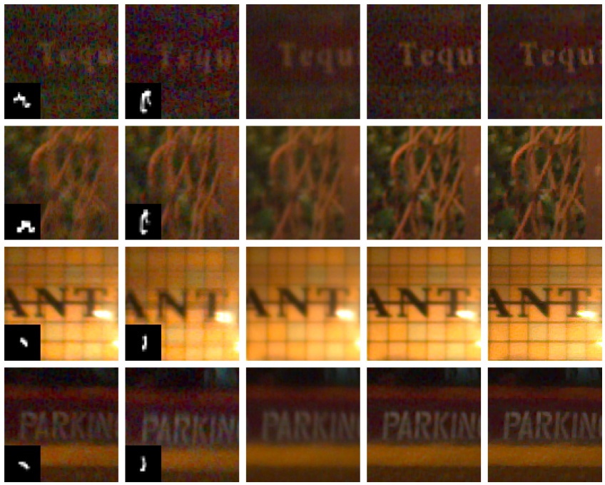 Image deblurring to remove blur caused by camera shake has been intensively studied. Nevertheless, most methods are brittle and computationally expensive. In this paper we analyze multi-image approaches, which capture and combine multiple frames in order to make deblurring more robust and tractable. In particular, we compare the performance of two approaches: align-and-average and multi-image deconvolution. Our deconvolution is non-blind, using a blur model obtained from real camera motion as measured by a gyroscope. We show that in most situations such deconvolution outperforms align-and-average. We also show, perhaps surprisingly, that deconvolution does not benefit from increasing exposure time beyond a certain threshold. To demonstrate the effectiveness and efficiency of our method, we apply it to still-resolution imagery of natural scenes captured using a mobile camera with flexible camera control and an attached gyroscope. |