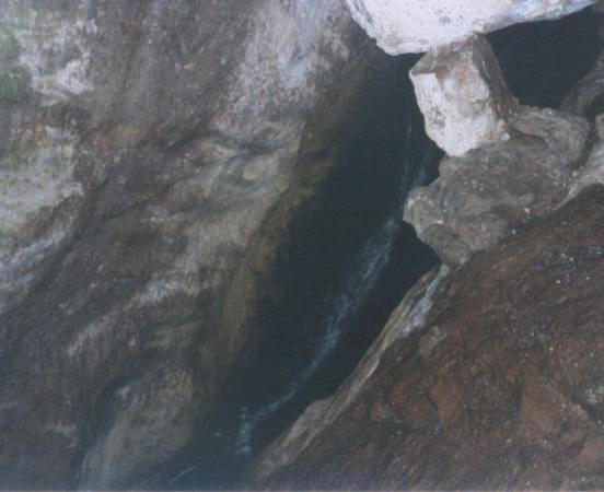 it cascades down the wall of a cavern. It was actually quite dark