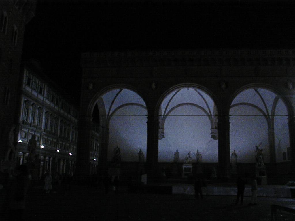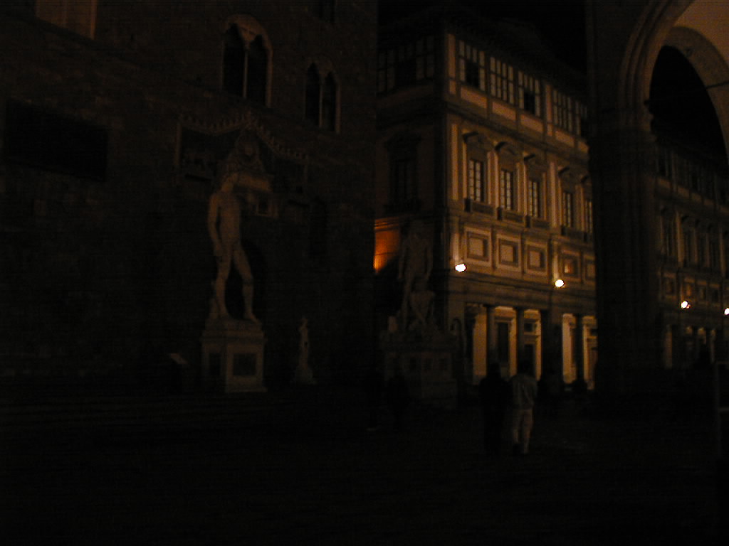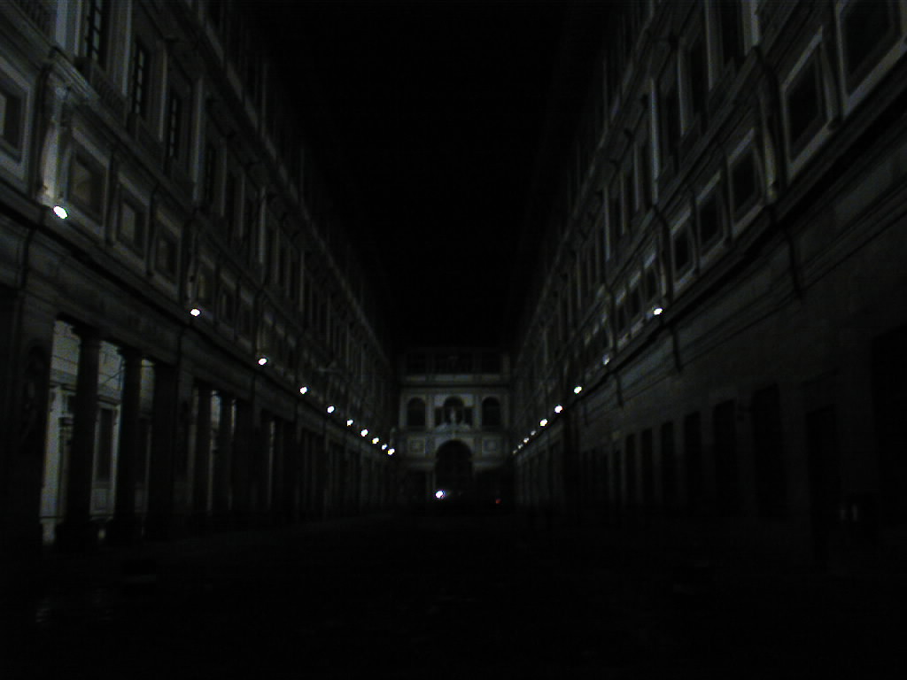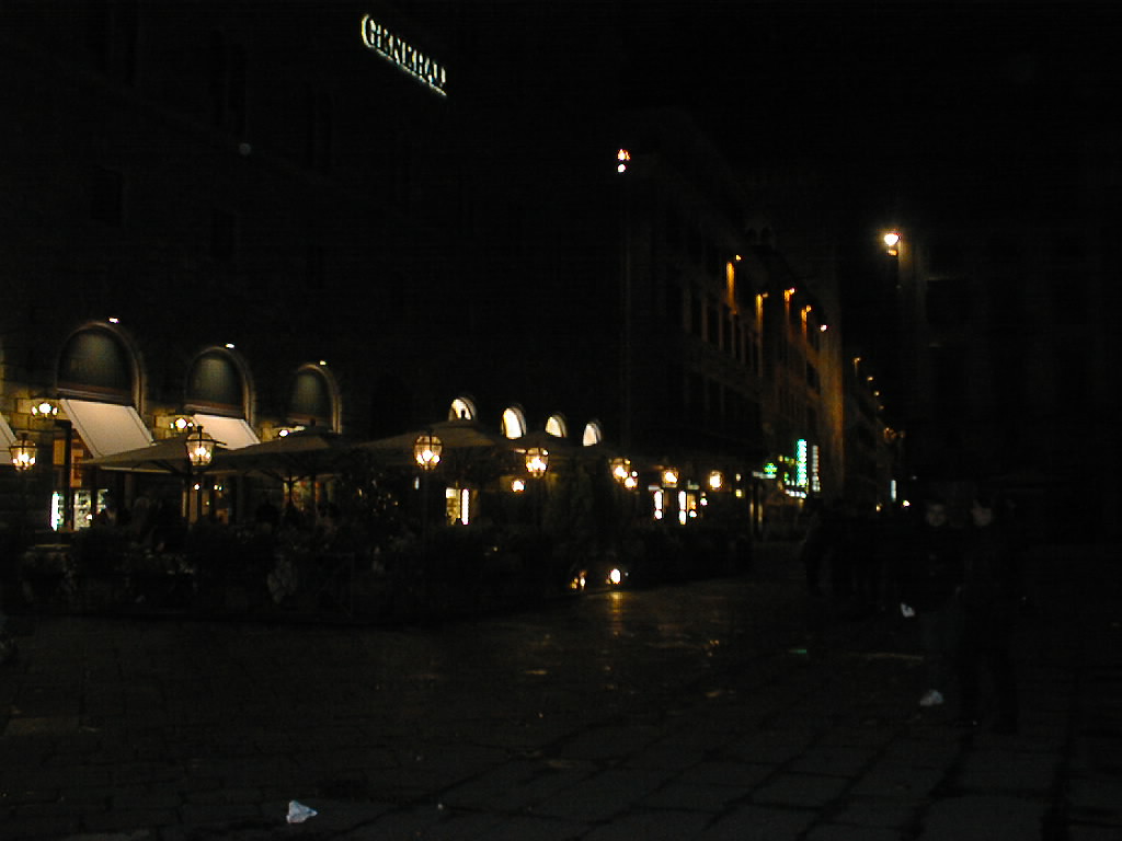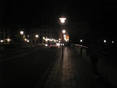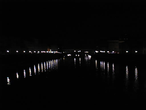 Lights reflect off the Arno River from the Ponte Alle Grazie (Thanks-giving bridge).