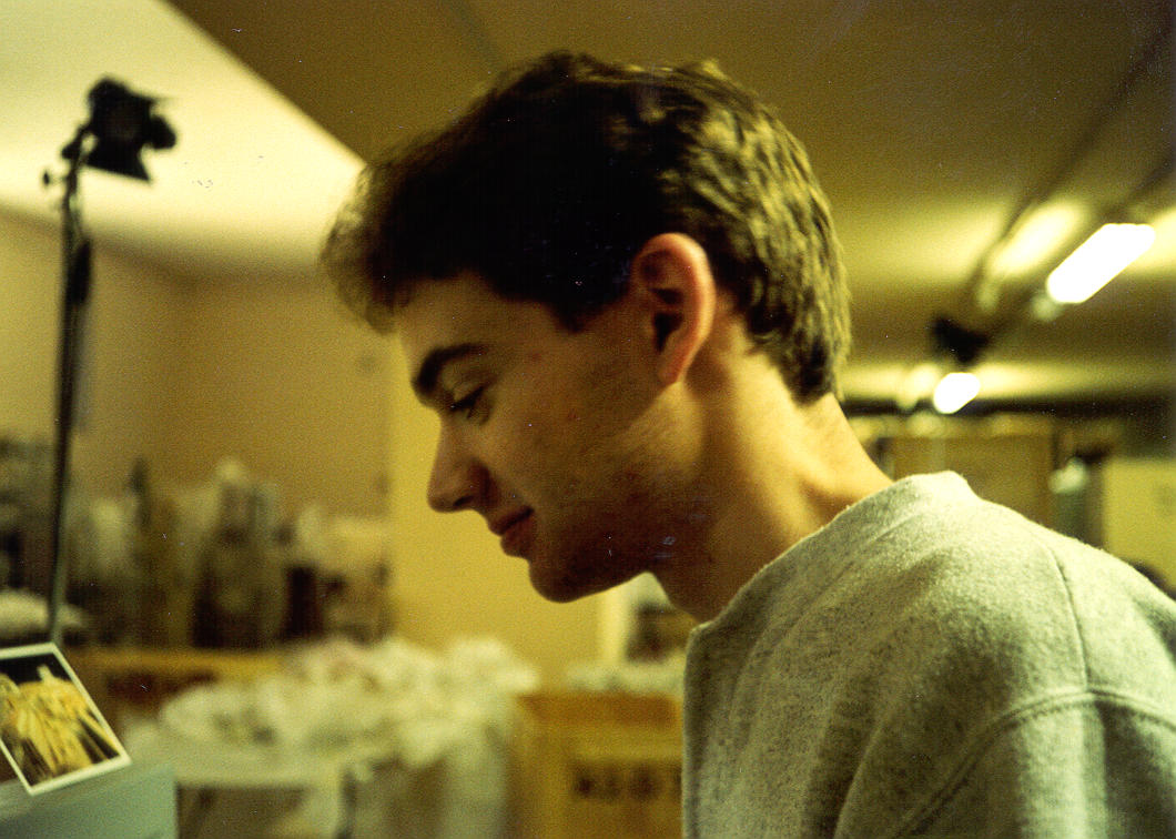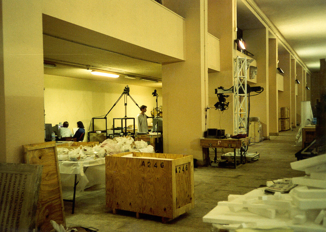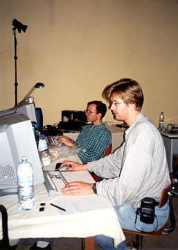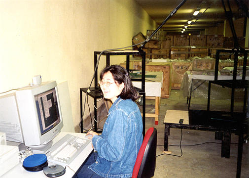 ++ Another picture of us at work. On the right you can see our "photograph station", where we took digital photos of each fragment that we scanned. |