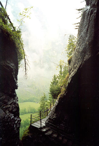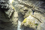 Trummelbach Falls is a fascinating place where a stream of water has cut its way through the hard rock, creating deep crevices and caves, only a few feet wide. A man-made series of tunnels lets visitors access the caves, and see the torrents of water cascading through the confined space.