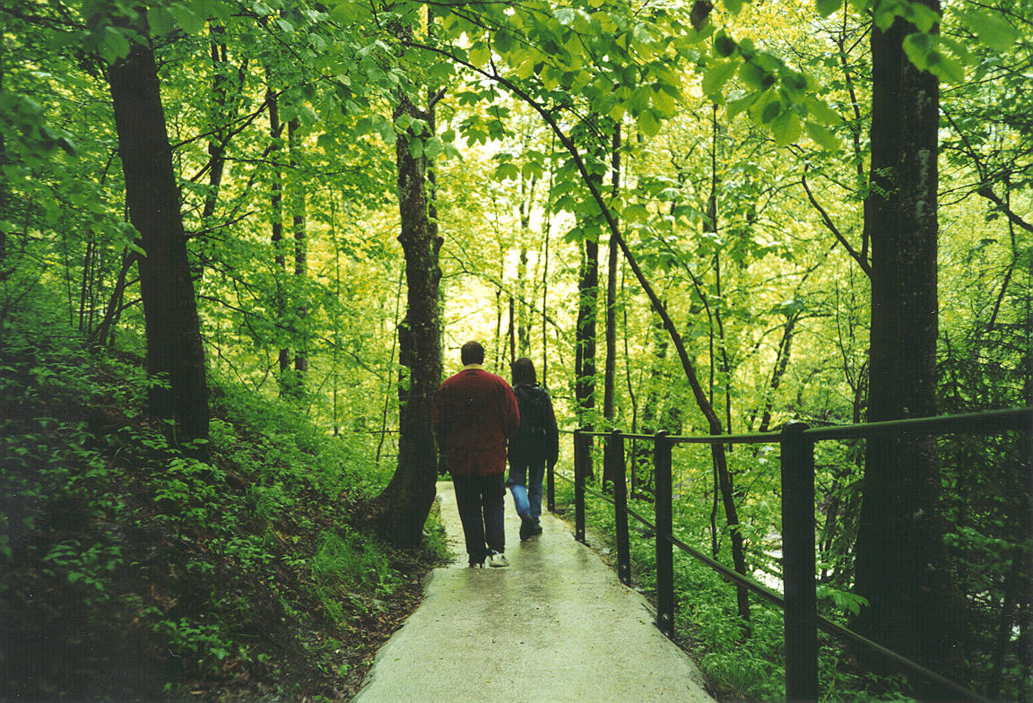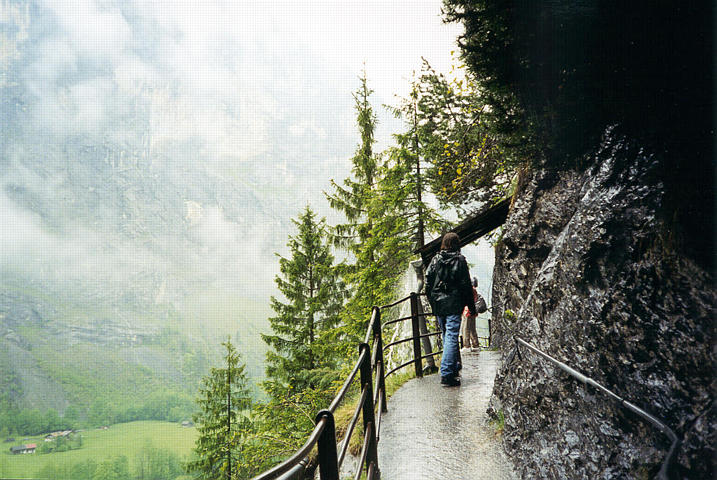 Jonathan and Szymon, walking from the bus stop to the entrance of Trummelbach falls.