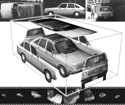 Here is an example of a model generated from volumetrically carving away silhouette edges, generated by Paul Debevec with just 5 telephoto pictures of his car: