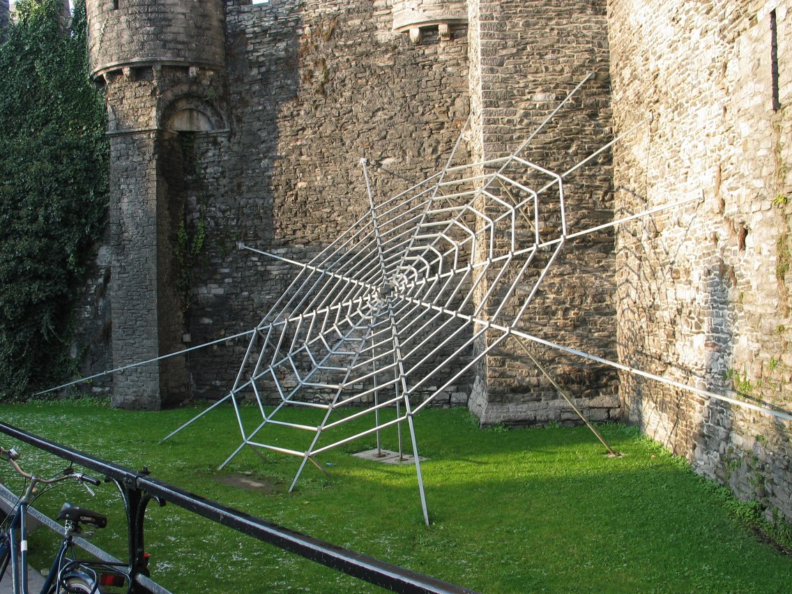 Art and functionality meet in this spiderweb-shaped structural support for the Castle of the Counts.