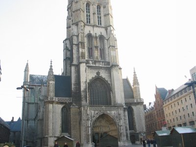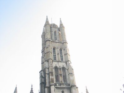 The belfort and the bell tower of St. Bavo's Cathedral.