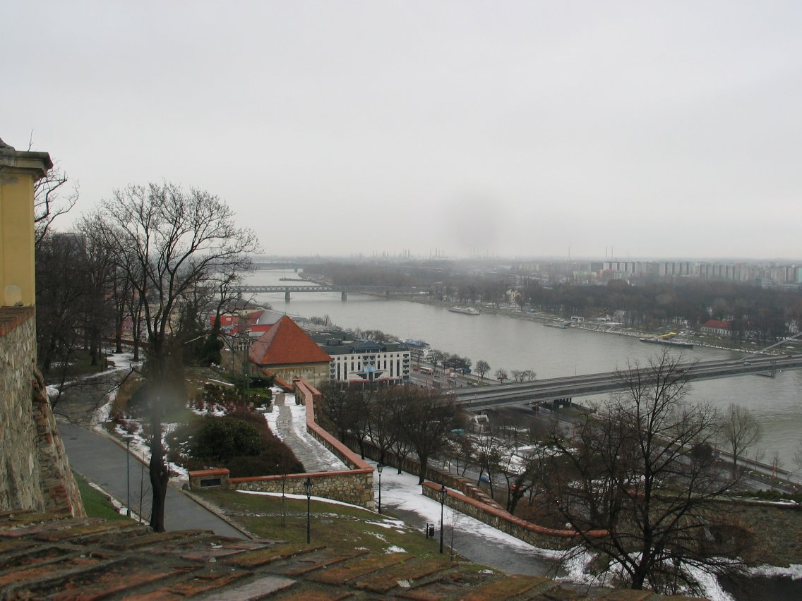 The Dunaj and Petržalka: the blotch near the center is a rain
