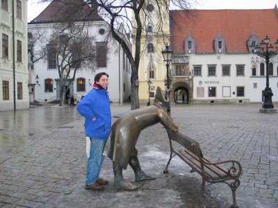Anyway, we were quite tired on the bus coming back. To cap off a tiring day, the bus broke down and so we were stranded in the middle of the highway until the next one came by (but the bus' heater was working and we were pretty snug and warm while waiting). Ah well, we got back to Hotel Regina safe and sound, and with some new impressions in our mind. Toli in particular had an "aha" moment when looking at Petržalka: he realized that the basic pattern of all cities is the same (just many people together in close proximity), and that's the core reason he prefers the countryside.