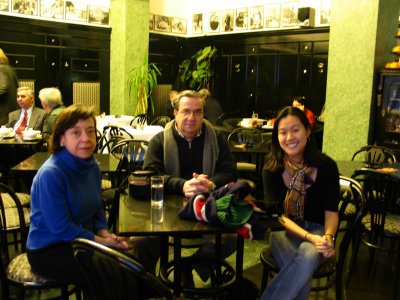 May, Nikolas, and Christine take a break in a cafe for dessert and hot
