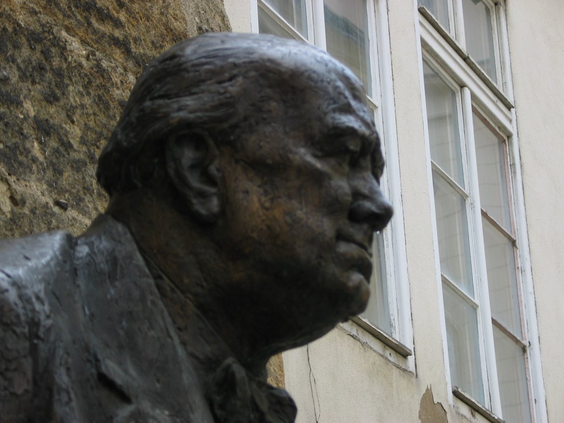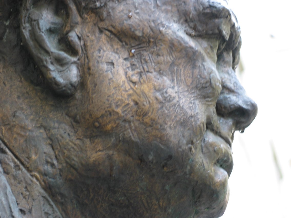 Winston Churchill's bust, complete with a winter runny nose.