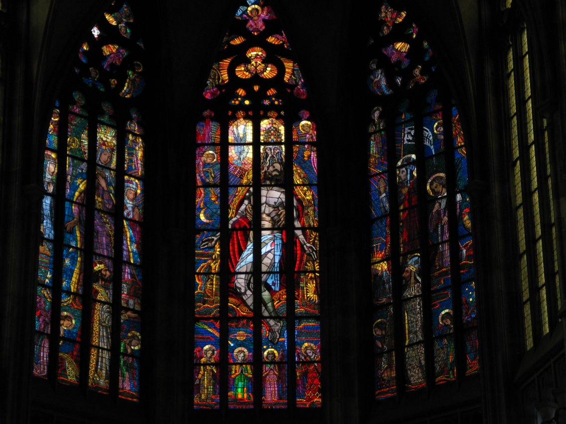 Stained glass window by Alphonse Mucha.
