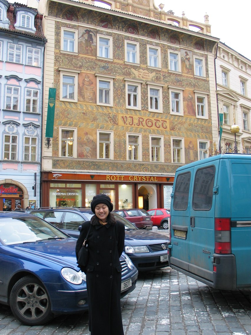 Christine in front of Rott Crystal, the most famous crystal shop in