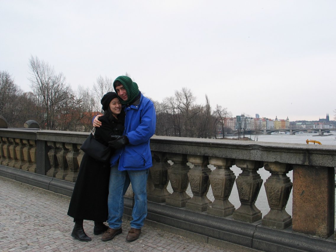 Christine and Myrto, with the river and the Pražský hrad