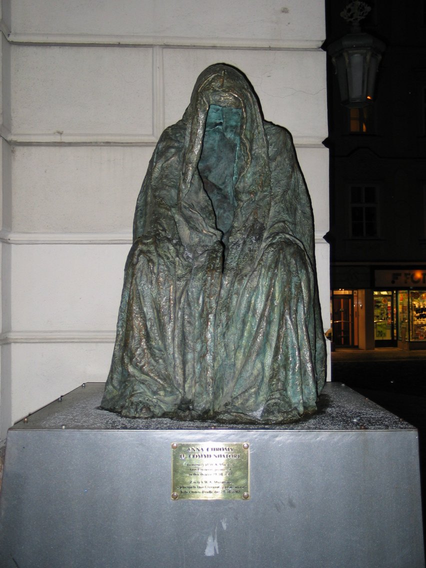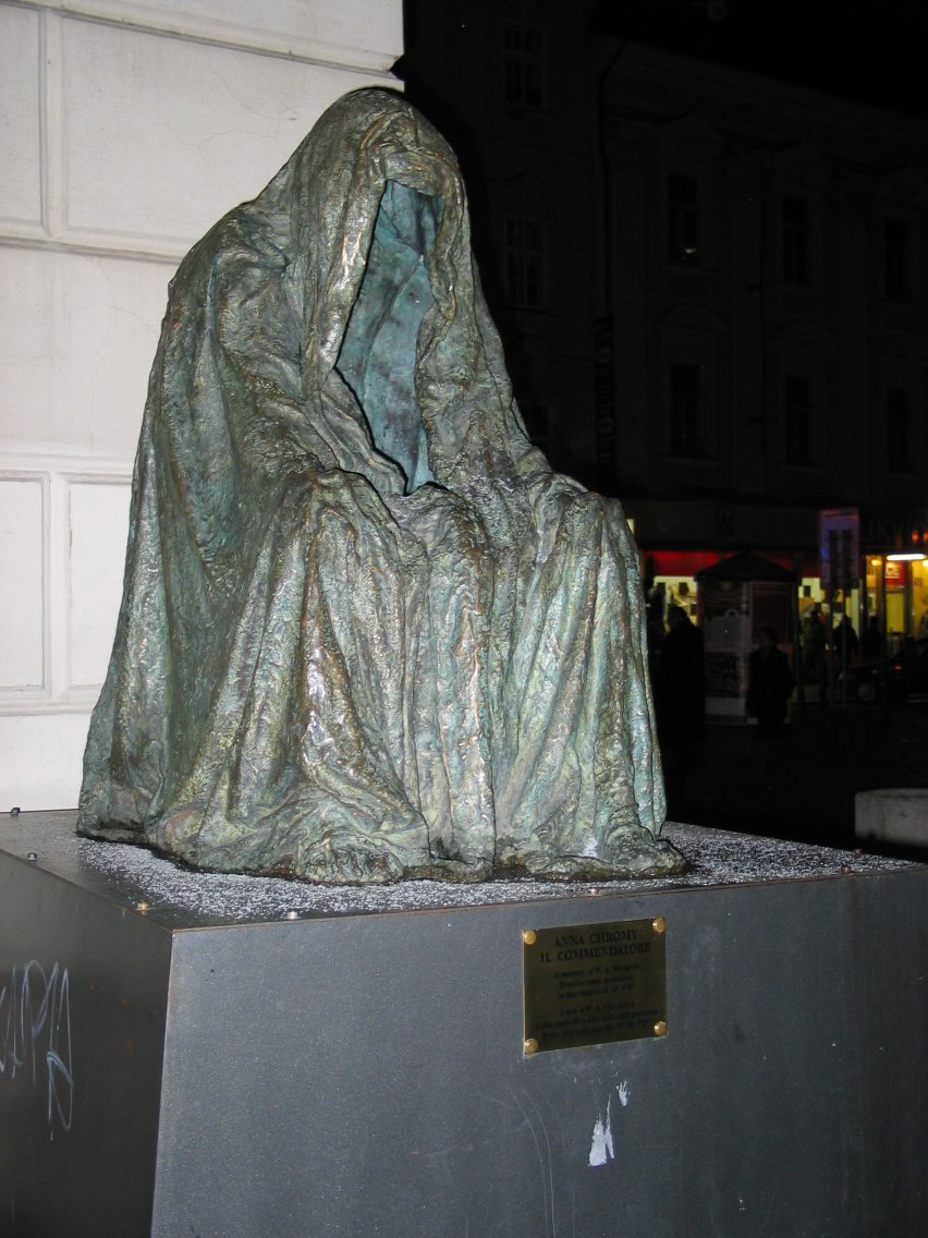 Il Commendatore. This statue by Anna Chromy commemorates Mozart's