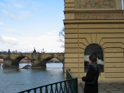 Myrto, with the river and the Pražský hrad (Prague