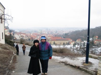 Christine and Myrto with the Malá Strana in the background.
