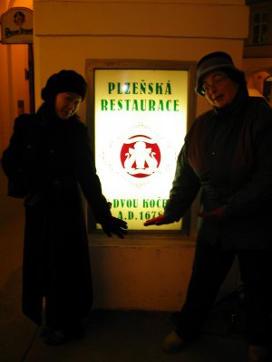 Myrto and Christine in front of the Restaurace U Dvou