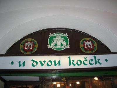 The sign over the entrance of Restaurace U Dvou Koček.