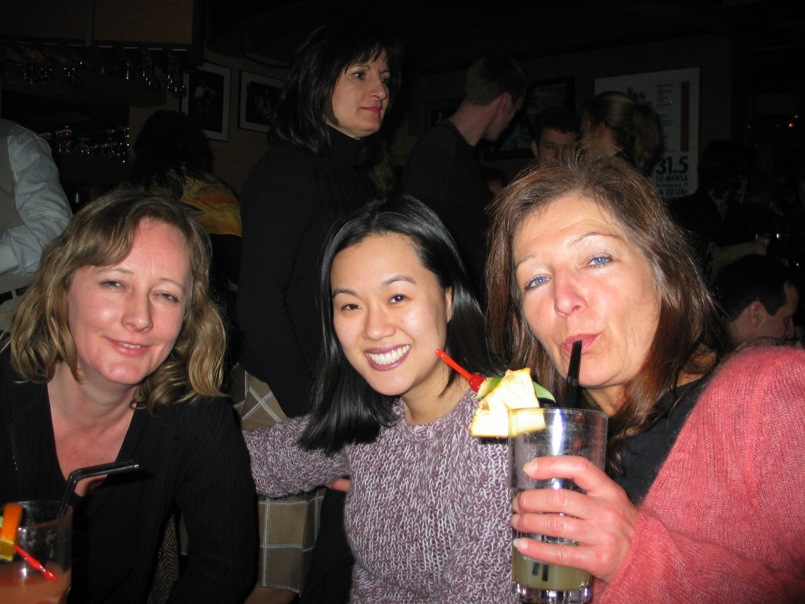 Julie (Uschi's friend), Christine, and Uschi enjoy Cuban music.