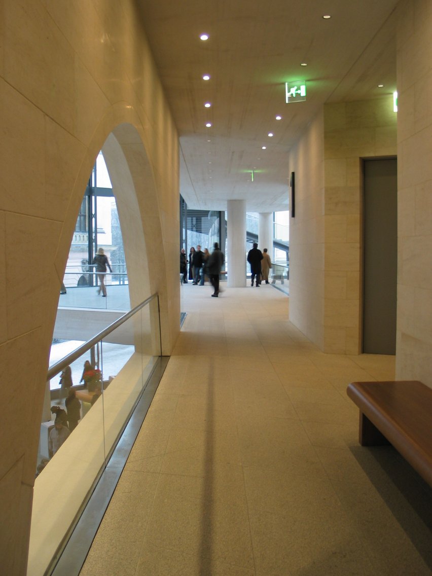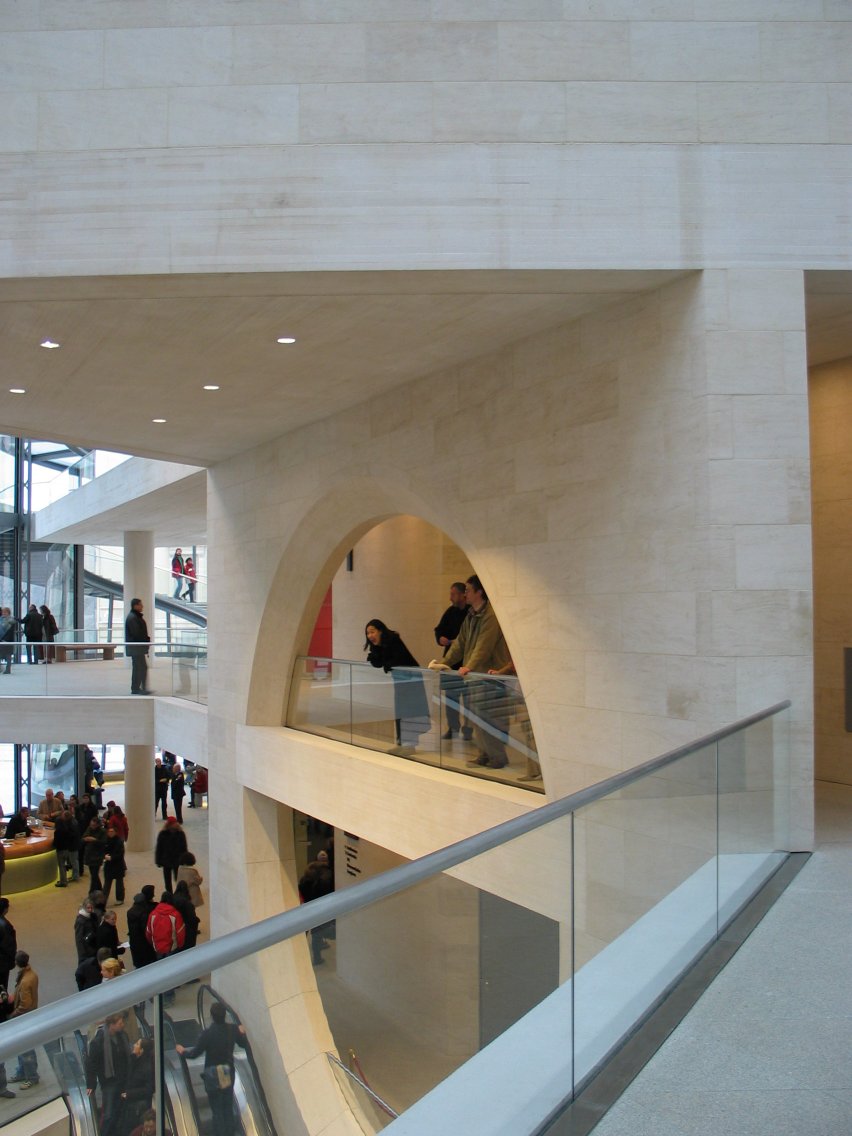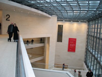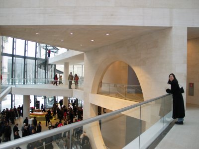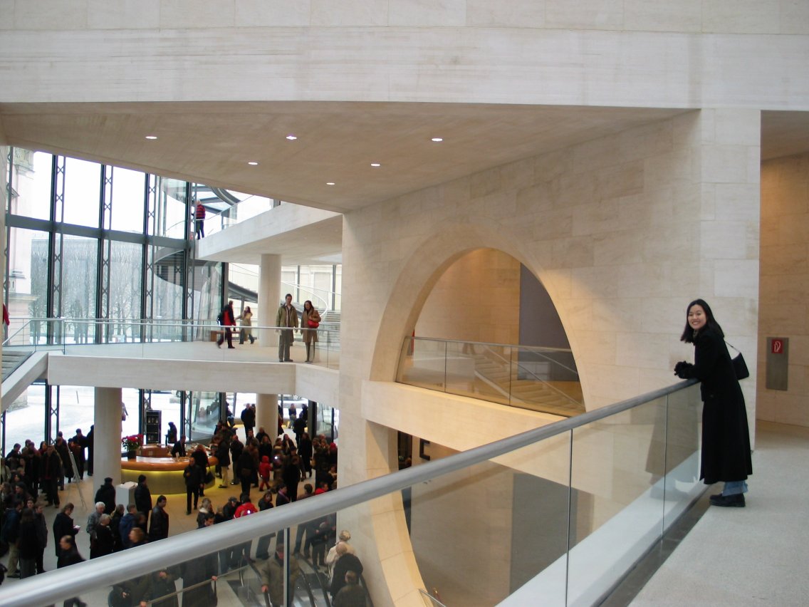Christine looks out on the spacious lobby, redesigned by architect I.M. Pei.