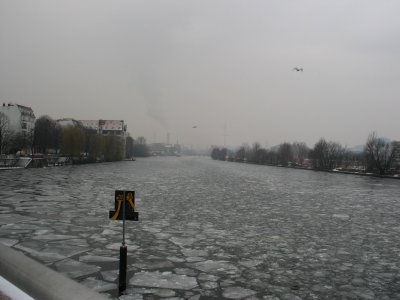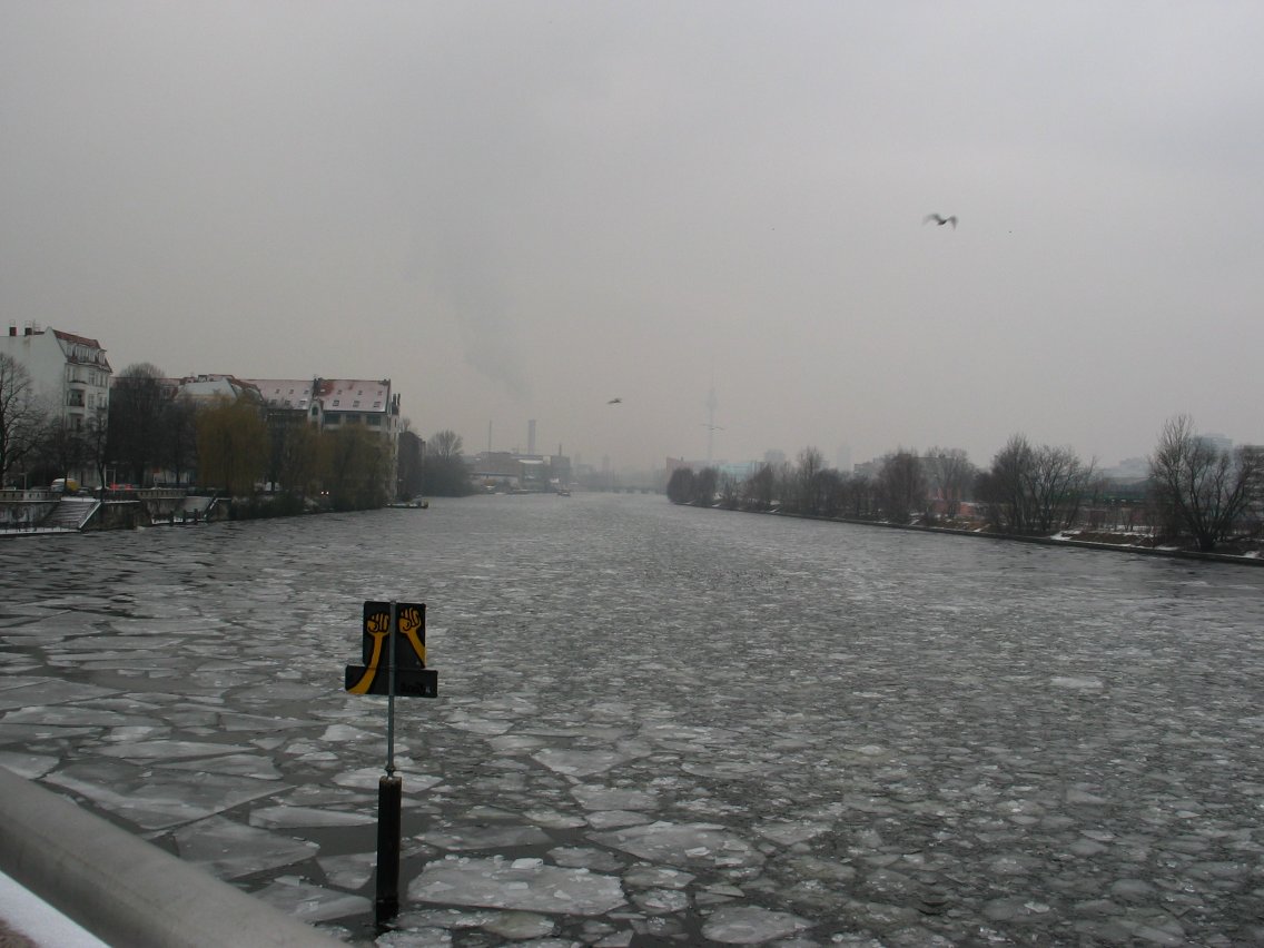 the half-frozen Spree river.