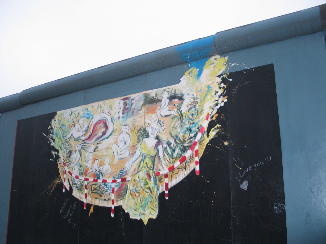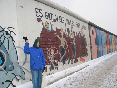 Toli in front of a portion of the Wall stating, "Es Gilt Viele