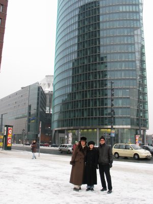 Uschi, Christine, and Michael in front of the Sony complex.