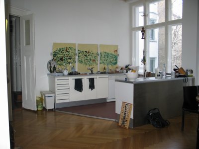 The modern kitchen (with art a-la Uschi) in a historical flat.
